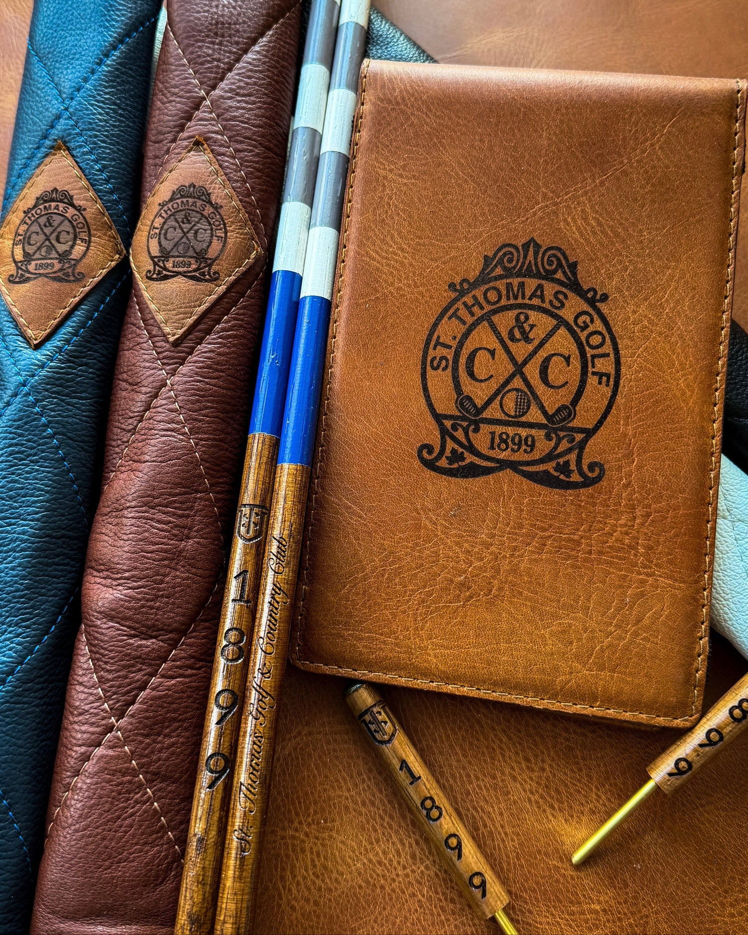 From the Links Wallet scorecard holder to custom pitch mark tools, each piece is built using premium materials and finished with custom engraving.