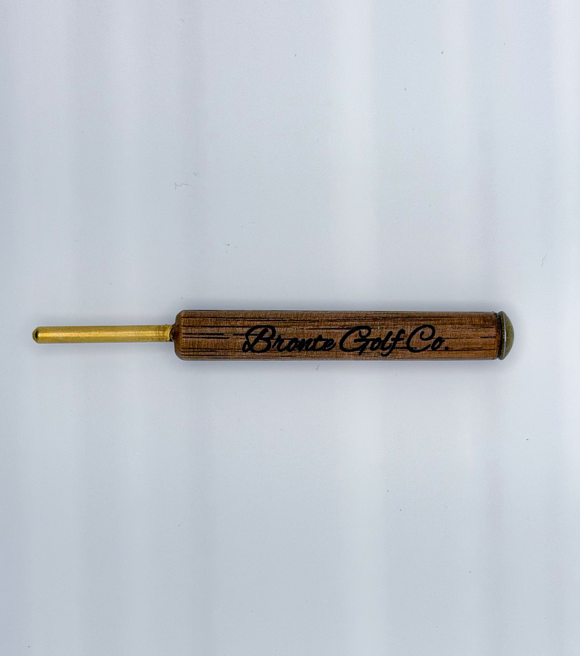 Fix your ball marks like a true player. Crafted from hickory and brass, this single-prong tool is as functional as it is timeless. Simply work around the mark pushing the edges in and tap down with your putter. No digging, no damage, only proper care that might just make the greenskeeper your biggest fan.